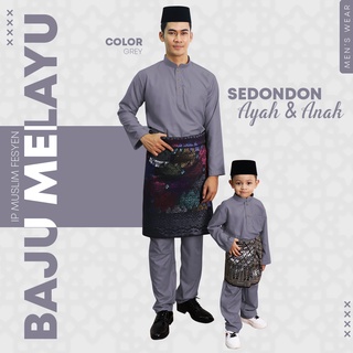 Sale baju melayu ayah dan anak warna hitam putih kelabu .